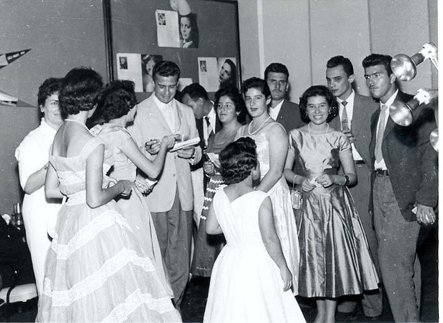 Na foto de cima aparece o galã Aírton Garcia, que ainda não tinha aparecido no cinema, mas já tinha fama em apresentações em TV na capital paulista. Ele assina autógrafos às meninas embevecidas com seu corpo de atleta e topete à la Elvis Presley.